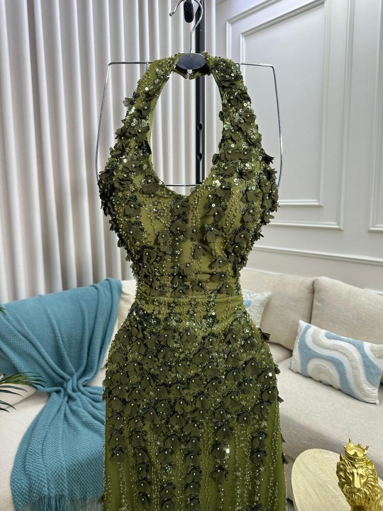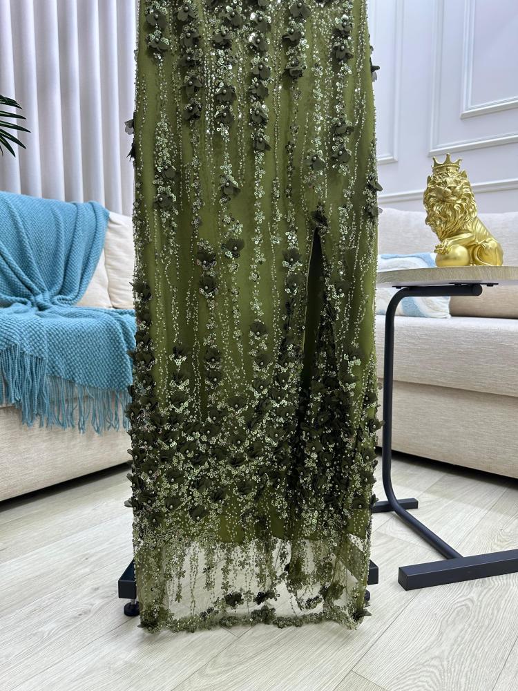 مواصفات الفستان : القماش : تطريز شك ورود راقياللون : زيتي .المقاسات: S. M. L. XL. XXL. XXXLمميزات الفستان : مناسبة للاعراس والمناسبات الراقية بتصميم يجمع بين والفخامة والرقاوة